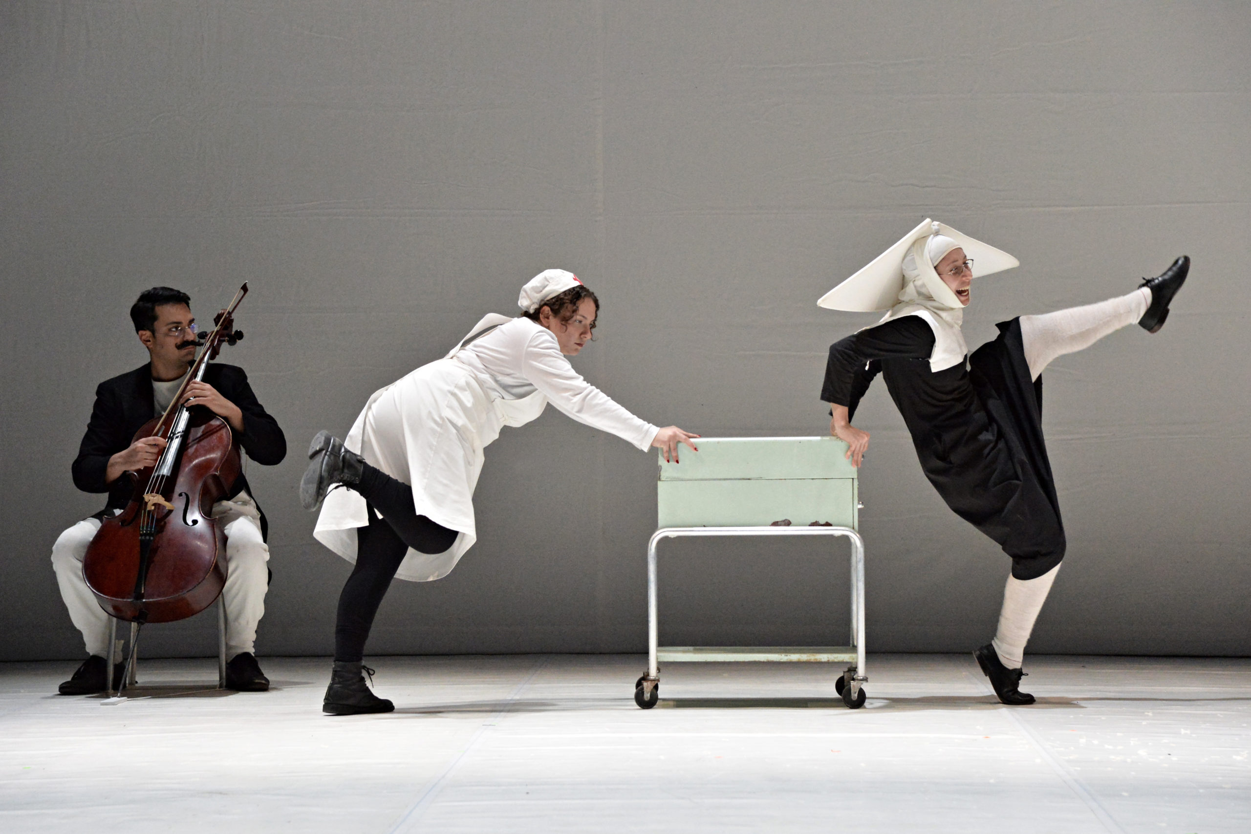 Una maratona teatrale che alterna scene più drammatiche ad altre furiosamente esilaranti, l’adattamento ruota intorno a domande fondamentali: che cos’è il tempo, che cosa sono la libertà, la reclusione, la malattia, la guerra, la morte?
