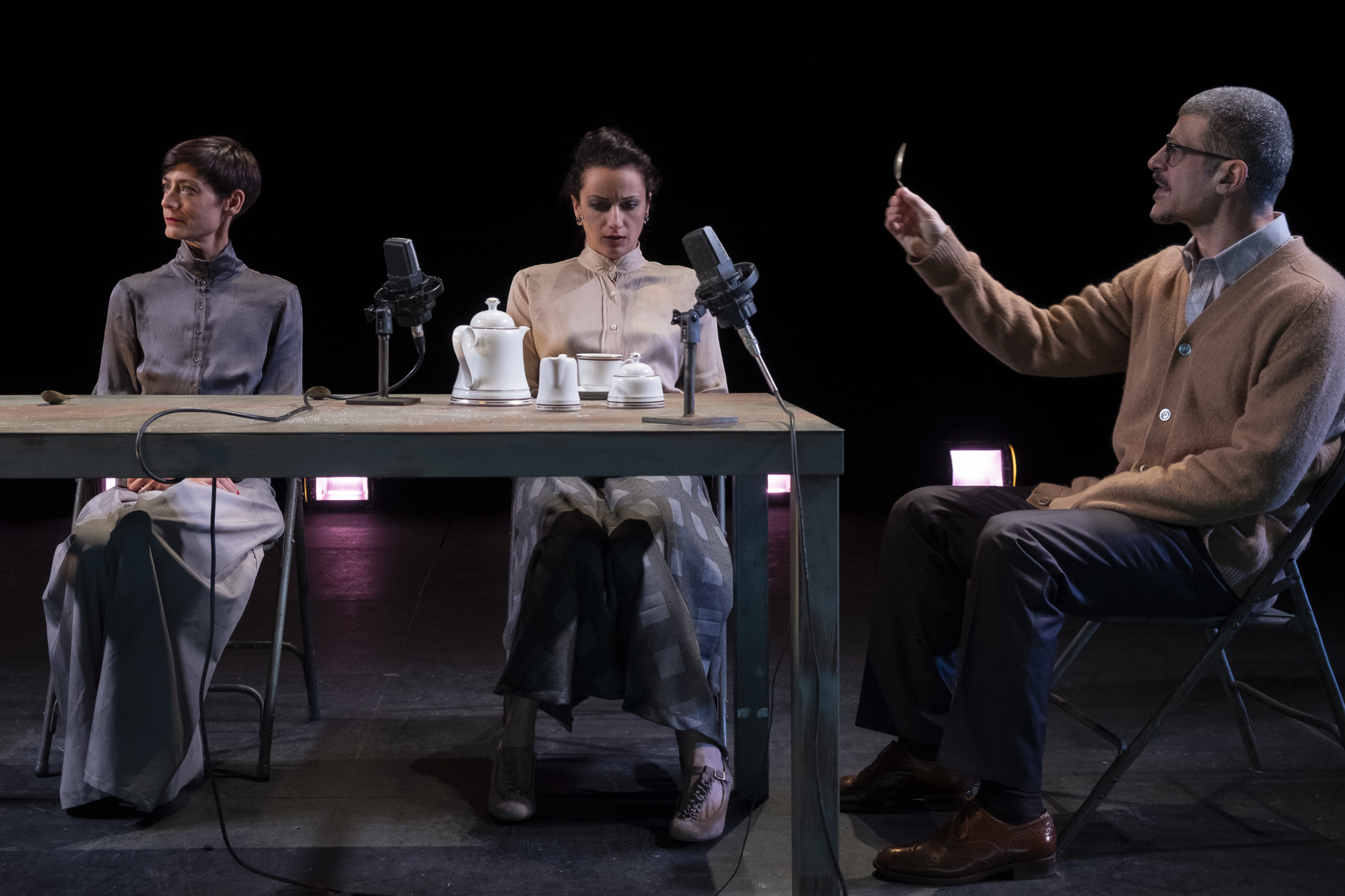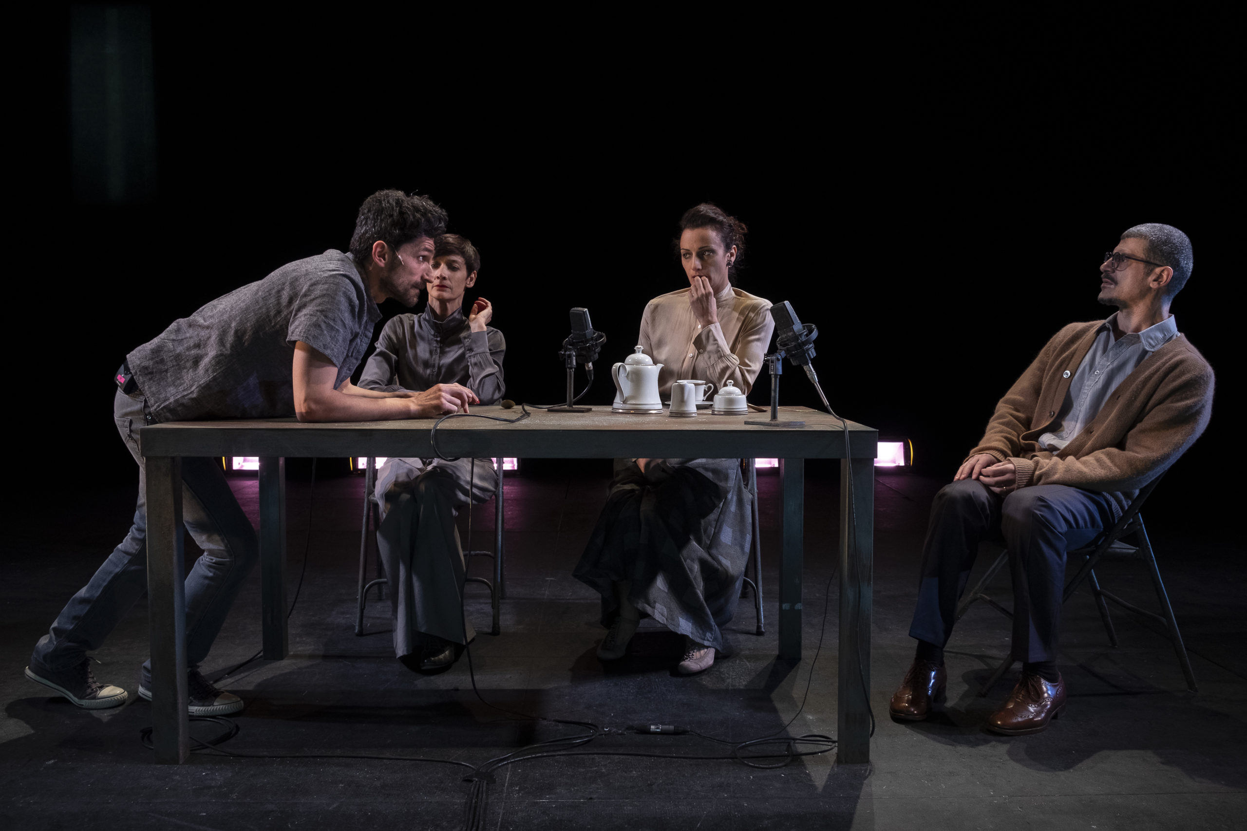 È un gradito ritorno quello della Compagnia lacasadargilla alle Passioni con la regia di Lisa Ferlazzo Natoli. Uno straordinario testo di Caryl Churchill che torna ad indagare i legami familiari e la costruzione della realtà attraverso linguaggio e azione. La narrazione parte da un dramma domestico apparentemente ordinario, ma si frammenta in sequenze ripetute e variate, creando momenti sorprendenti che catturano lo spettatore. La regia mette in luce il meccanismo stesso del teatro: parola, gesto e pausa diventano strumenti per esplorare la complessità delle relazioni e l’attesa che permea la vita quotidiana. La scena è essenziale: un tavolo, alcune sedie, un appendiabiti e oggetti di uso comune, illuminati da luci calibrate e accompagnati da una partitura sonora che amplifica anche i più piccoli suoni. Elementi surreali, come apparizioni improvvise o eventi straordinari, interrompono la linearità della rappresentazione, ricordando che la realtà teatrale è sempre un intreccio tra ciò che è e ciò che potrebbe essere.