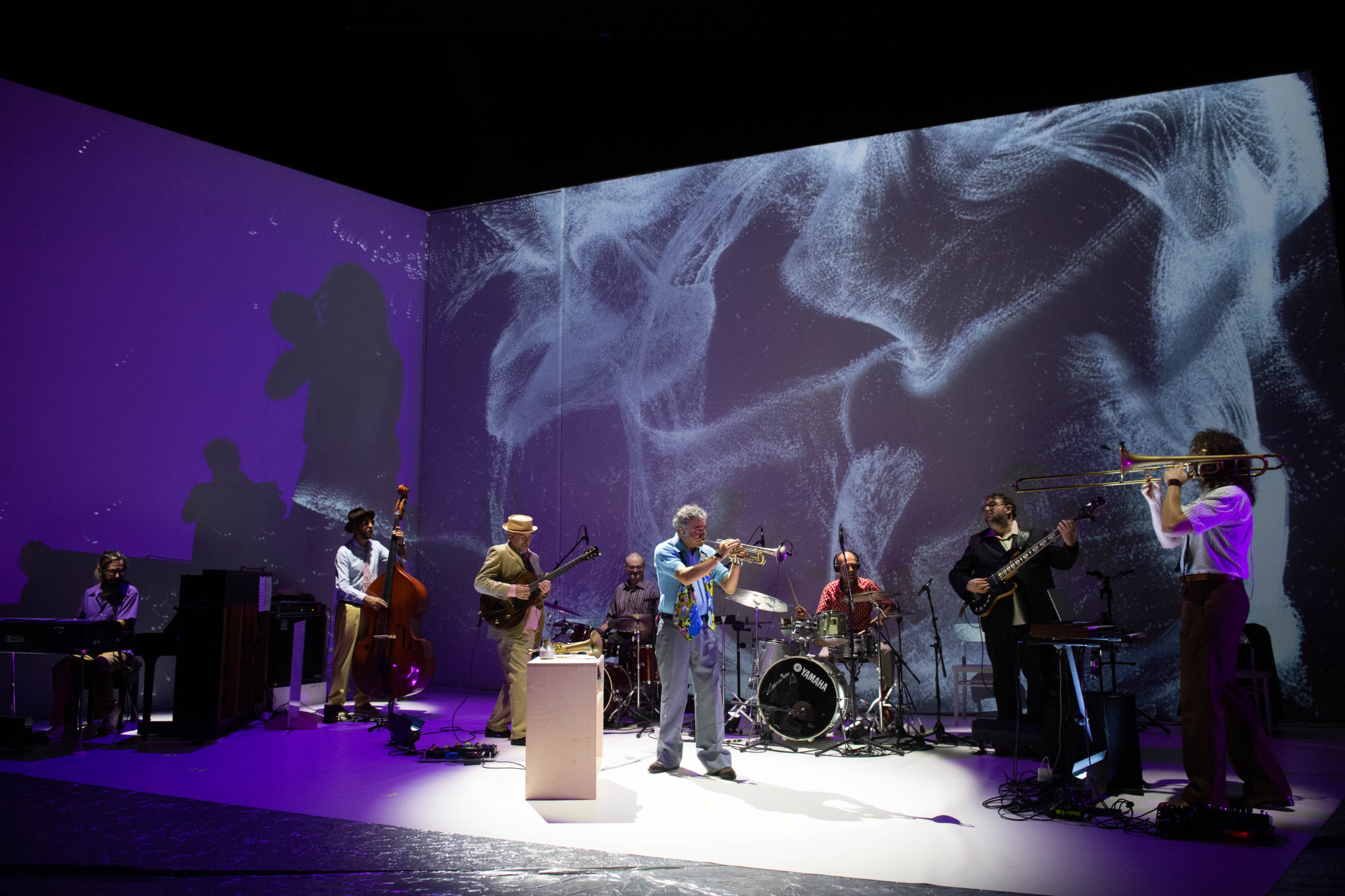 La narrazione intreccia episodi autobiografici di Fresu – soprattutto l’apprendistato del jazz fra gli anni Settanta e Ottanta – con storie di vita e arte di Miles Davis, permettendoci di cogliere quanto la sua influenza abbia plasmato il jazz contemporaneo: un punto di riferimento musicale e umano, capace di una rivoluzione stilistica e culturale senza precedenti e di determinazione nell’affrontare le discriminazioni del suo tempo. Insieme a Fresu, sul palco, una formazione di sette fuoriclasse e diversi strumenti, acustici ed elettrici, esegue brani ispirati al repertorio di Davis accanto a composizioni originali che catturano l’essenza del musicista americano. Sul grande fondale alle spalle dei musicisti scorrono elementi visivi integrati con la musica: una speciale tecnologia elabora dal vivo un visual, sulla base di impulsi biometrici e acustici registrati dai sensori indossati da Fresu, trasformando ogni gesto del trombettista in un’esplosione cromatica che amplifica l’impatto emotivo dei brani.